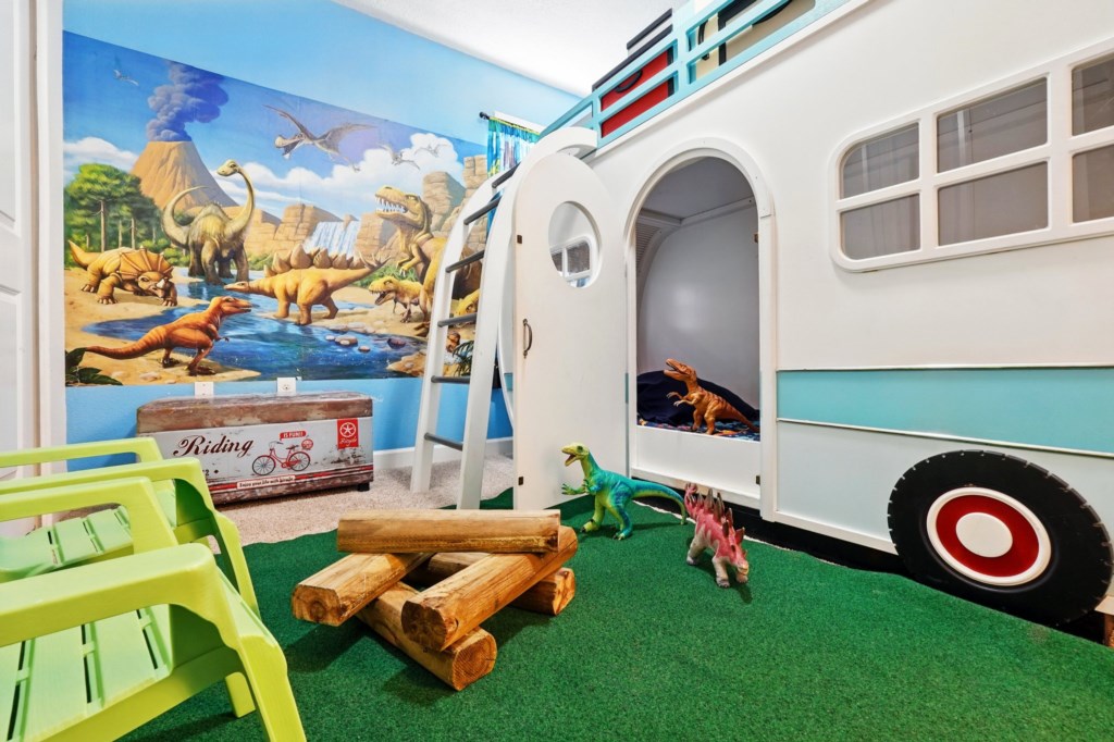 room, a dedicated game room, and comfortable sleeping arrangements for up to 12 guests.