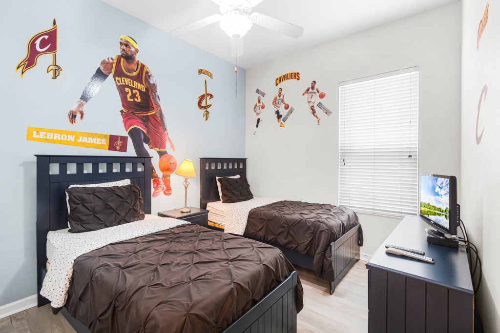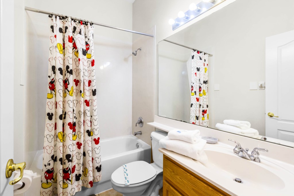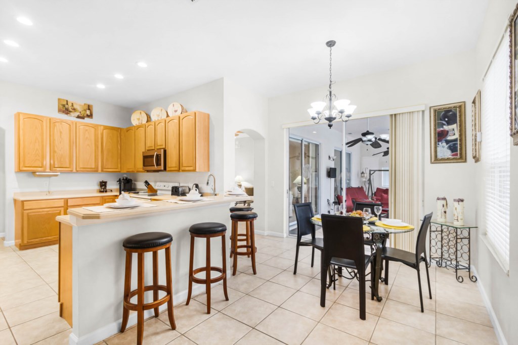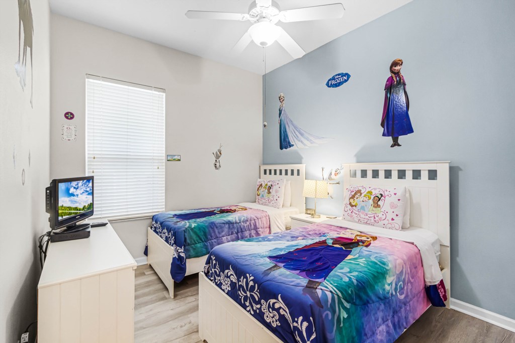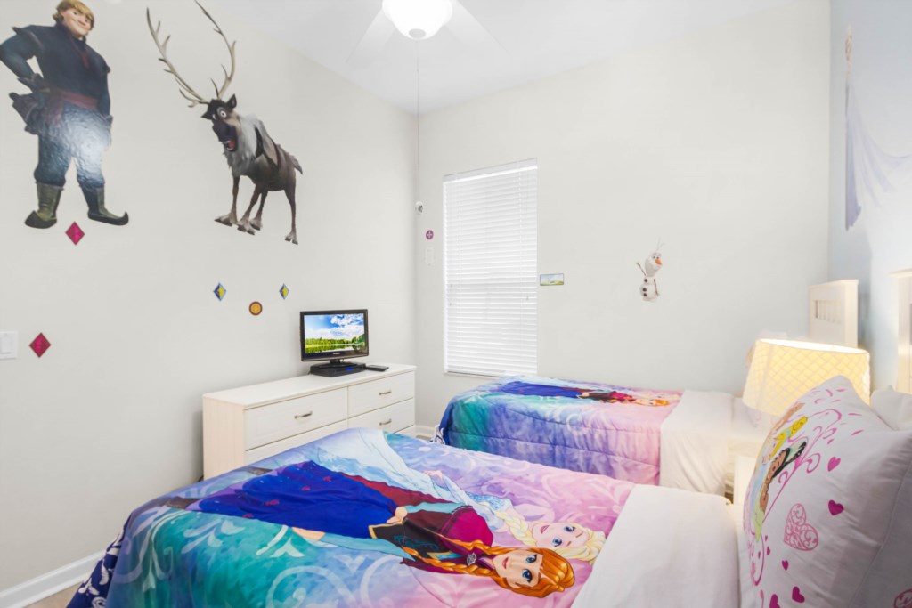 This home offers the perfect blend of comfort, convenience, and location. The fully equipped kitchen has everything you need to prepare meals at home, complete with a charming breakfast area, while the elegant dining space sets the scene for memorable family dinners. The villa features a spacious king master suite, a queen bedroom, and two twin bedrooms—one of which is a custom-themed kids’ room—each with its own TV, plus two additional bathrooms for your comfort.