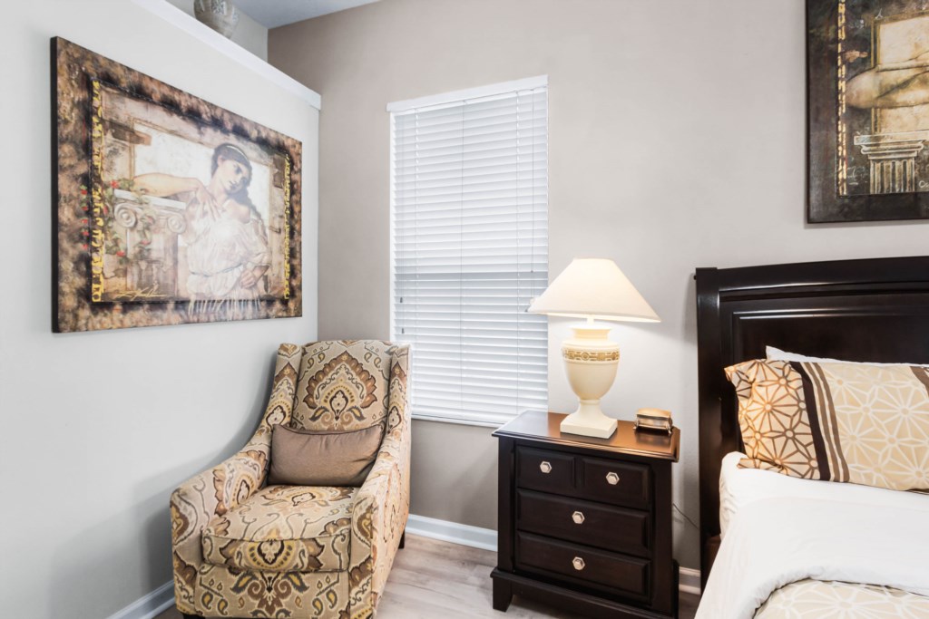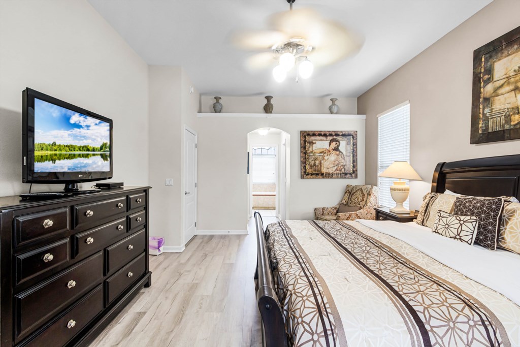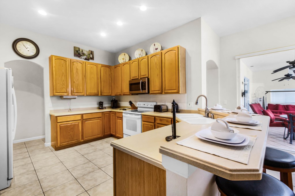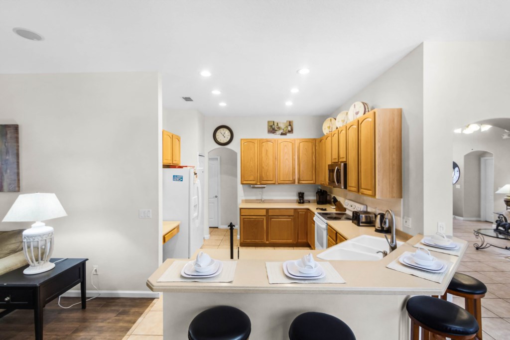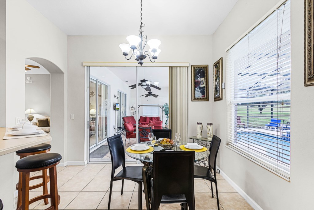 This home offers the perfect blend of comfort, convenience, and location. The fully equipped kitchen has everything you need to prepare meals at home, complete with a charming breakfast area, while the elegant dining space sets the scene for memorable family dinners. The villa features a spacious king master suite, a queen bedroom, and two twin bedrooms—one of which is a custom-themed kids’ room—each with its own TV, plus two additional bathrooms for your comfort.