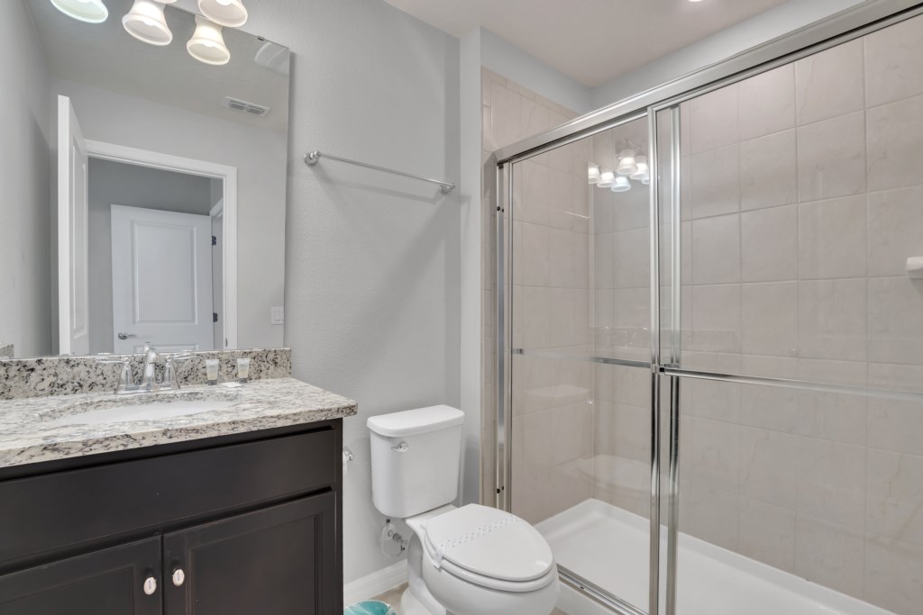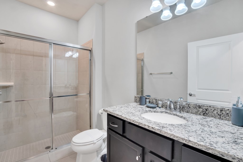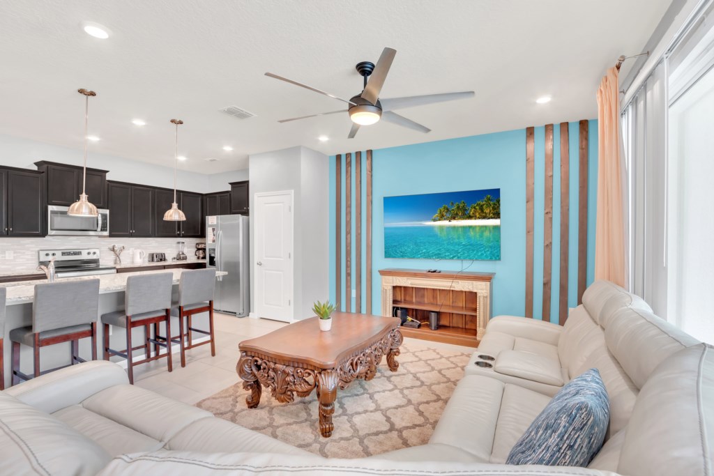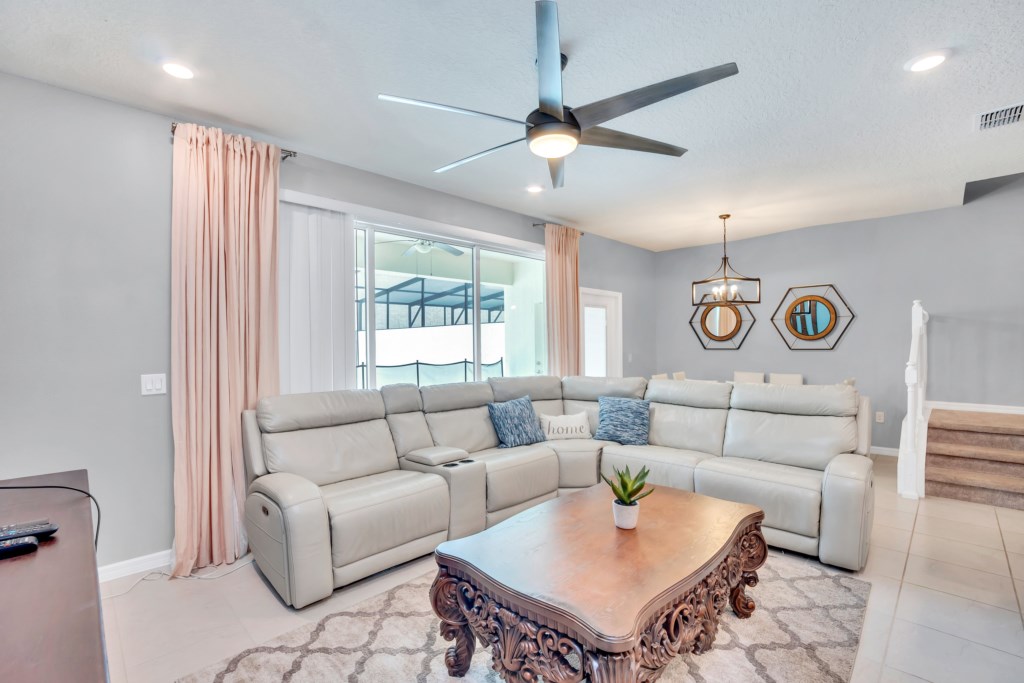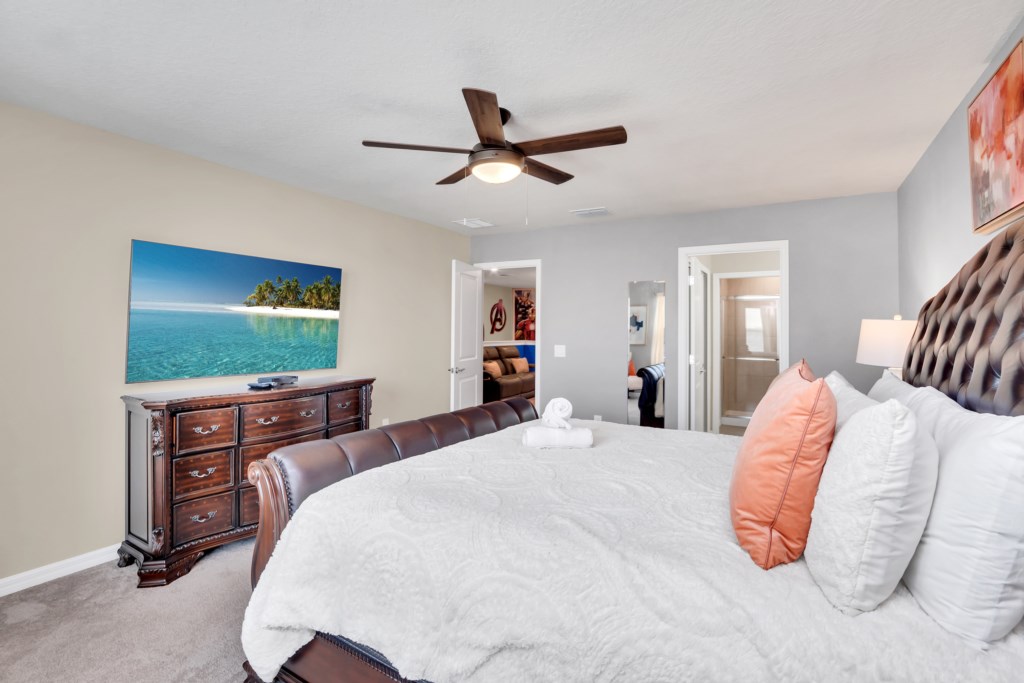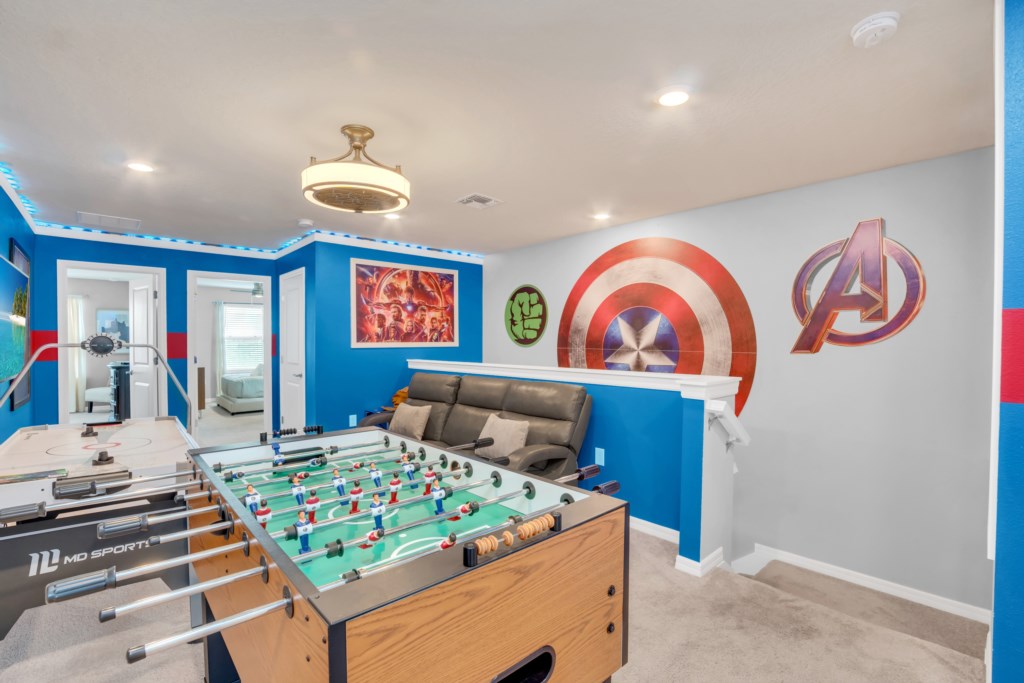Upstairs, kids (and kids at heart) will love the Mickey and Harry Potter themed bedrooms, while adults can retreat to the luxurious king suites with private bathrooms. The villa also features smart TVs in all rooms, high-speed WiFi, and central air for your comfort.