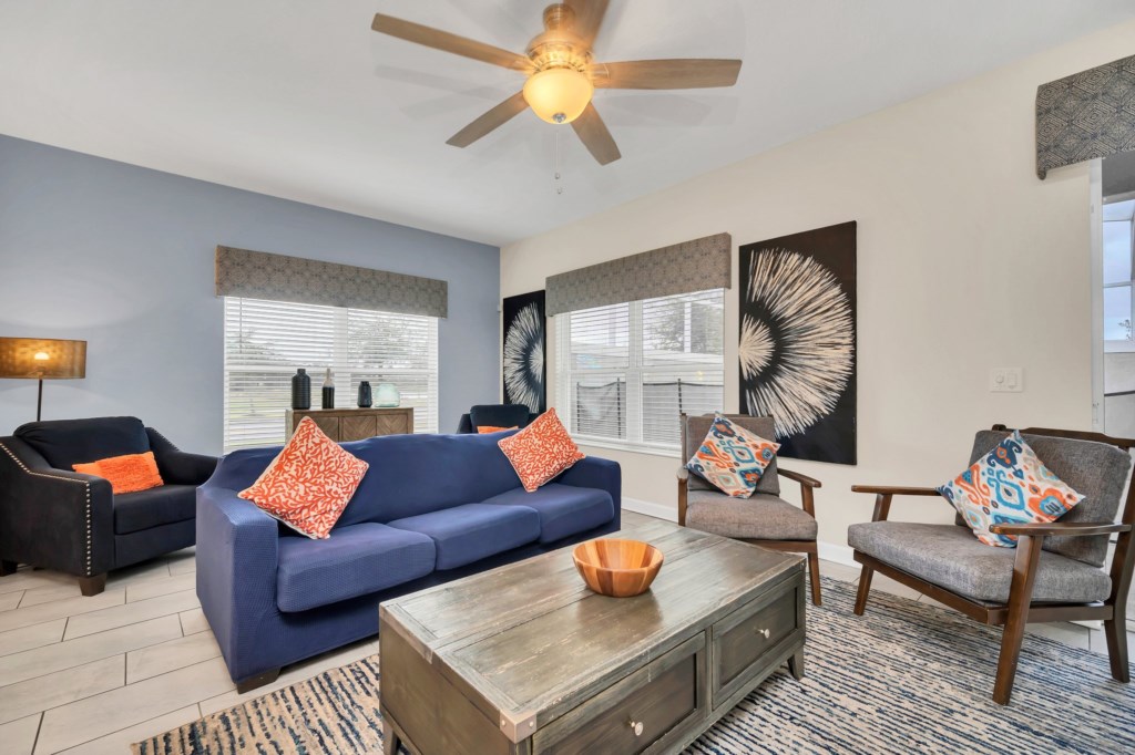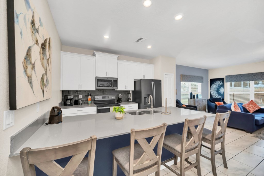 Sunny Palms Retreat, a bright and inviting getaway designed for comfort, style, and fun. Located just minutes from Orlando’s world-famous attractions, this spacious home offers 5 beautifully appointed bedrooms and 4 bathrooms, making it perfect for families or groups traveling together.
