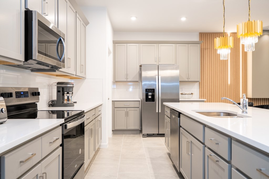 • Fully Equipped Kitchen with Granite Countertops and Stainless Steel Appliances