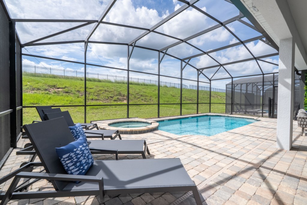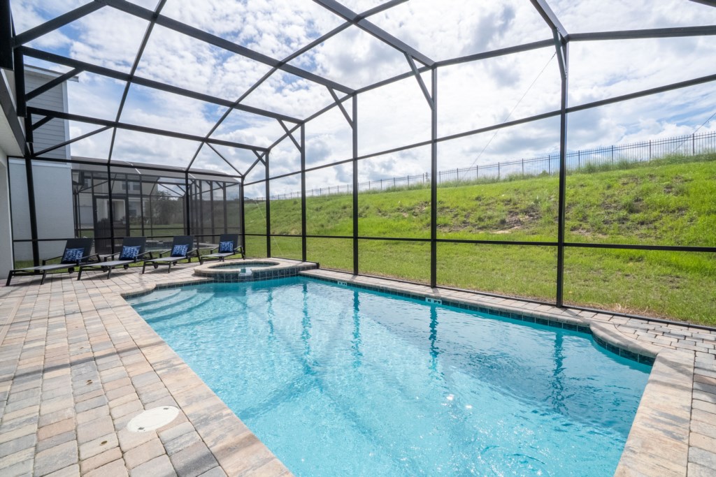 • Private Screened-in Pool + Child Safety Pool Fence